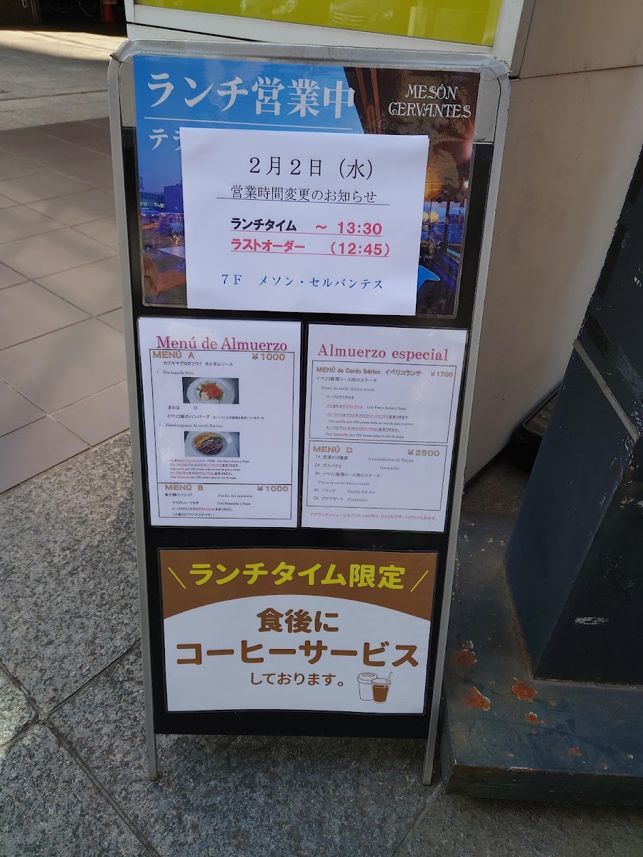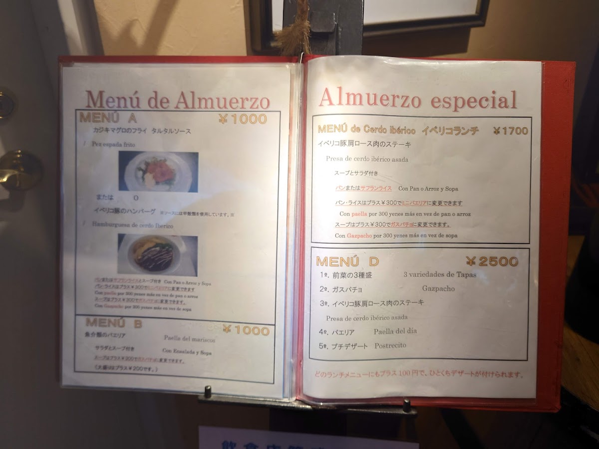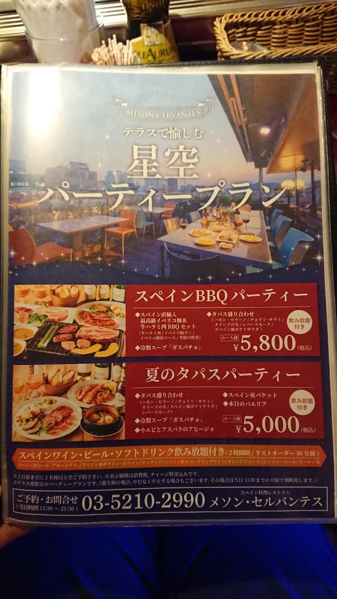 From a reviewer's perspective, the menu at Meson Cervantes in Chiyoda offers a refined blend of Spanish-inspired cuisine with thoughtful pricing options. For larger gatherings, the 大皿パーティープラン 4,500円コース presents an ample selection of shared dishes, while those seeking a more indulgent experience can opt for the 【2時間飲み放題付】大皿パーティープラン 9,000円コース, which includes a two-hour all-you-can-drink feature. Complementing these courses are lighter staples like スペイン産オリーブ and スペイン産バゲット 1個, ideal for nibbling alongside drinks or as an appetizer. The lunch offerings are equally appealing, with a variety of set menus catering to different tastes: MENU A, MENU B パエリアランチ, MENU Iberico イベリコランチ, and the more elaborate MENU D ランチコース, each promising a taste of Spain in Tokyo. Overall, the menu balances generous group-friendly platters with curated lunch options, making it accessible for both casual diners and those seeking a more celebratory meal.