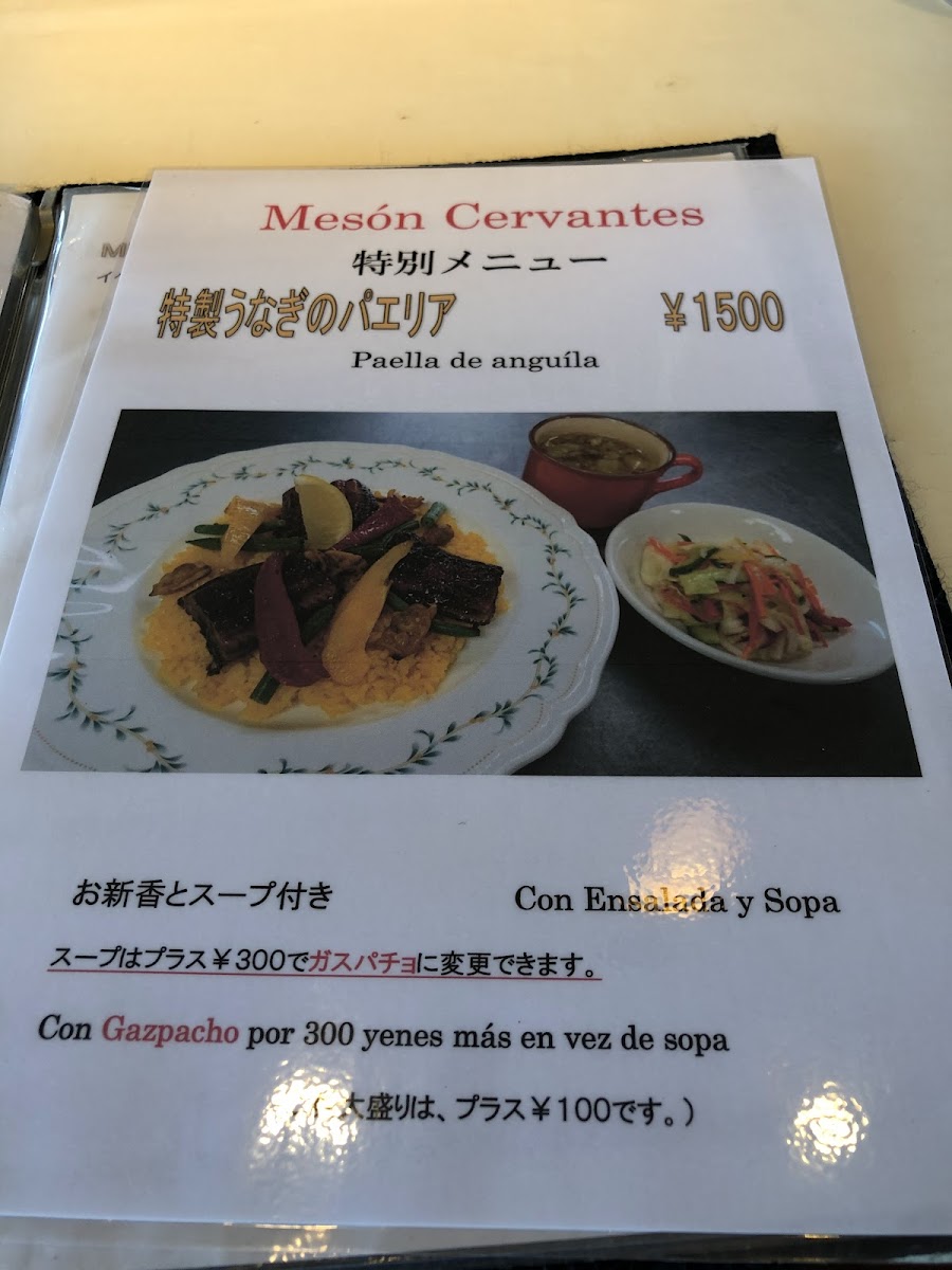 本日のパエリア(仕込みにより内容は変わります) ※サラダとスープ付き。 ※スーブはプラス¥400でガスパチョに変更できます。